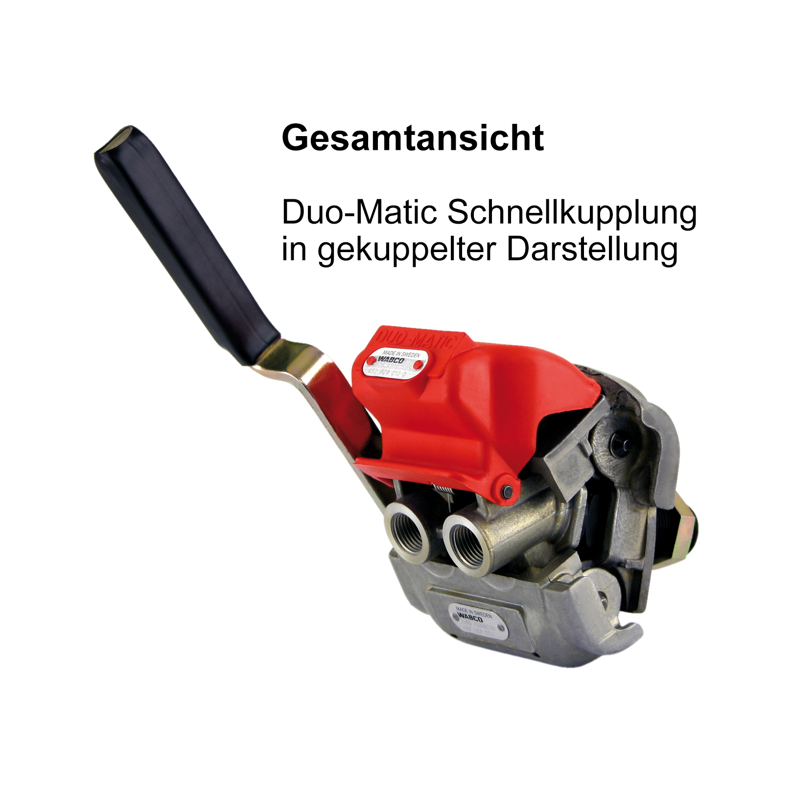 Die Duo-Matic Schnellkupplung dient der Verbindung der Druckluftbremsanlage des Zugfahrzeuges mit der Bremsanlage des Anhängers.